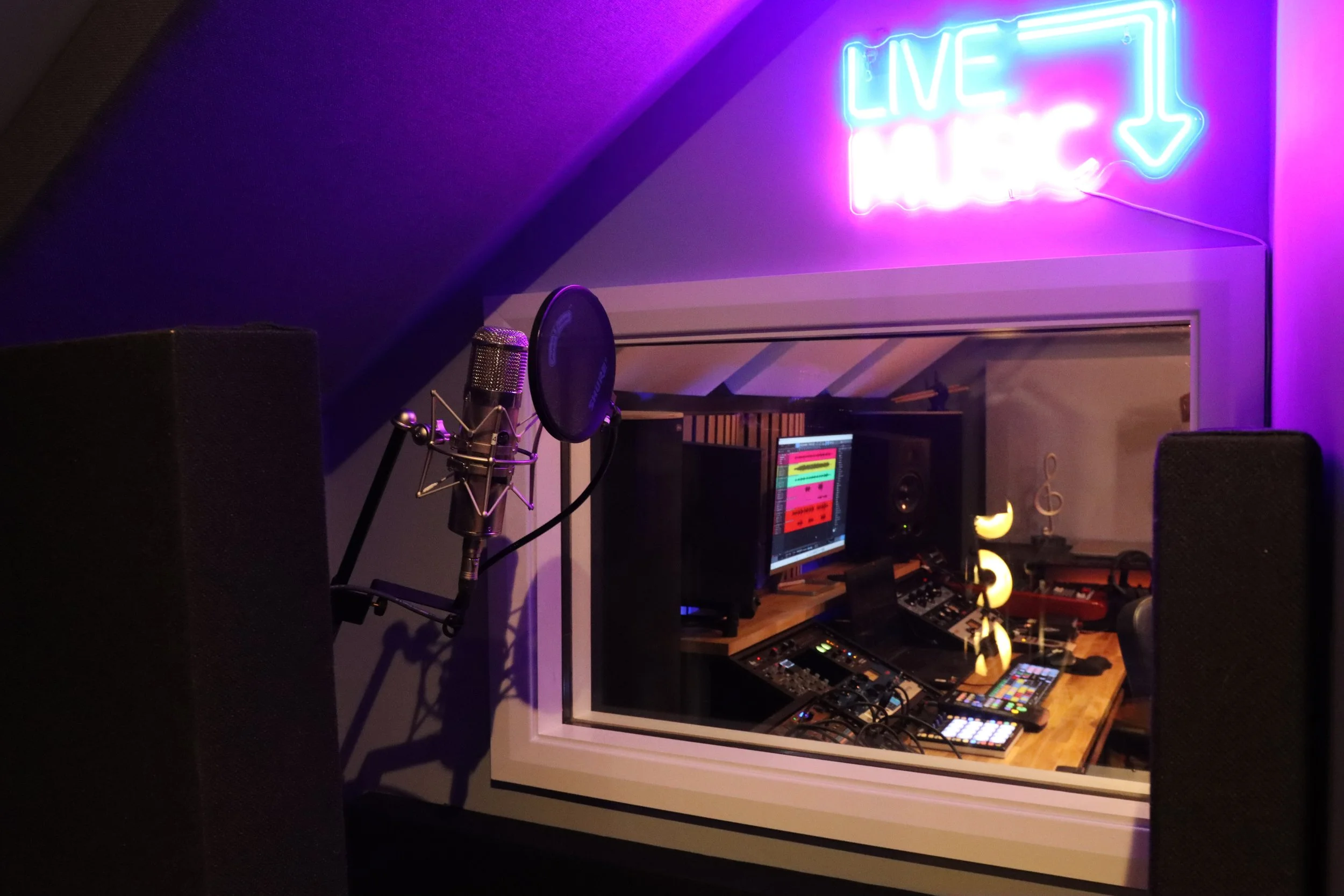 Our home-based studio features a professionally treated live room, control room, and a dedicated vocal booth, making it the perfect space to capture your music - whether it’s a stripped-back acoustic track or a multi-instrument session.